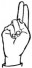На ћирилици написано МИОМИРА СТАНОЈЕВ састоји се из 15 слова [?]. Исписано ћириличном једноручном азбуком за глувонеме: